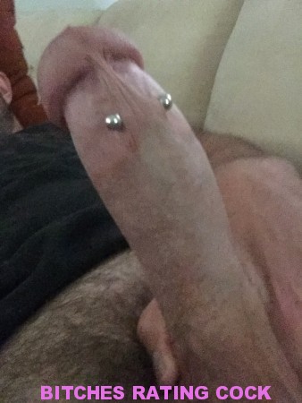Wow, baby, you have one great looking cock. I bet you don’t even need that piercing to get a girl going in the right direction. Looking at your cock without the piercing, it has many, many great qualities. Your head is nice and plump, and pink, and round. I like how your glans meets your shaft in a very deep ridge just before flaring out into your incredibly thick shaft. I like that your shaft is so much thicker than your head. I can feel my pussy tightening at the thought of your fat cock stretching me out…..MMM baby. I love fat cock. Your cock is about average length, but all the better for riding hard for hours. I love working out on a cock. The thought of being taken advantage of by a fat cock like yours has my pussy begging to be touched. I would love to feel those two steel balls stimulating my clit before you push into my tight pussy. I would love to feel that piercing passing through too…Oh man, I bet it’s a hit with the ladies!! I would love to see more pictures if you would like to send some more in! I just can’t get enough of yours!! 4/5
